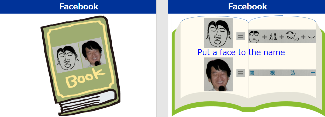 どうでも良いことですが、(12月のお知らせのFacebookを見るために)Facebookに投稿しようかと思った原稿案を添付します。文字通り「顔の本」で、入社試験問題の似顔絵がベースになっています。ページ毎に一文字づつ、答えが左右のページに載っているイメージの本です。です。結局、Facebookは好みが合わないので、本の出版?はやめました。